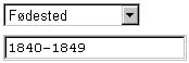 4) Eksemplet viser søk på alle personer som har fødestedkode fra og med 1840 til og med 1849. Ved f eks å skrive 1840-1849 som søkekriterium vil alle som er født i kommunene fra og med Saltdal til og med Hamarøy bli listet opp i stigende rekkefølge for kommunenummer.