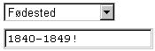 5) Eksemplet viser er en kombinasjon av søk i eksempel 3 og 4. Ved f eks å skrive 1840-1849! som søkekriterium vil alle som har fødested fra og med kommunenummer 1840 til og med 1849, men hvor man ekskluderer søk i de nevnte kommunene, bli listet opp.